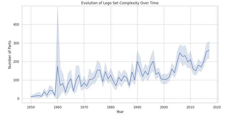 Evolution of Lego Set Complexity Over Time